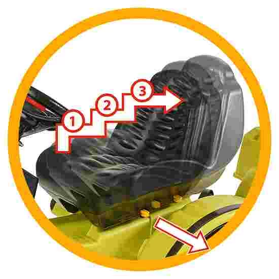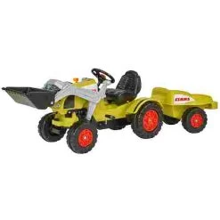 The CLAAS Celtis loader with trailer features a precise chain drive, which makes it easy to move. The tried and tested Ackermann steering ensures a wider turning circle and safer driving. The seat with raised backrest can easily be adjusted to 3 settings to suit the height of any child. The built-in cam makes it easy to tighten the chain. Great fun for little farmers thanks to 2 towing hooks and a loading bucket that can move in a number of ways. There is plenty of room in the trailer for lots of small items.