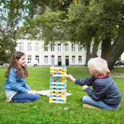 A great game of skill for outdoor use where you must build the tower as high as possible. Each player must remove a block from the tower and place it at the top. The player who removes a block which results in the tower toppling over is the loser. Building blocks made from birchwood, block size: 21x5x3.3 cm. Max. tower height approx. 100 cm. Suitable from 5 years +.