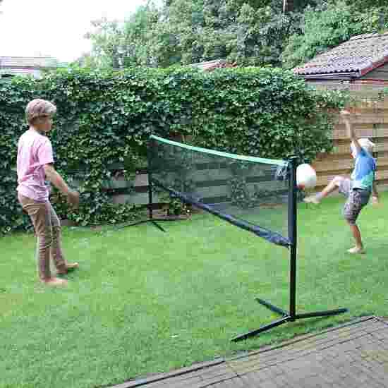 The robust metal frame and anchors keep your net stable and prevent it from tipping over, even during volleyball or football tennis. Mowing the grass is not a problem either: simply lift the net out of the anchors and you’re good to go!