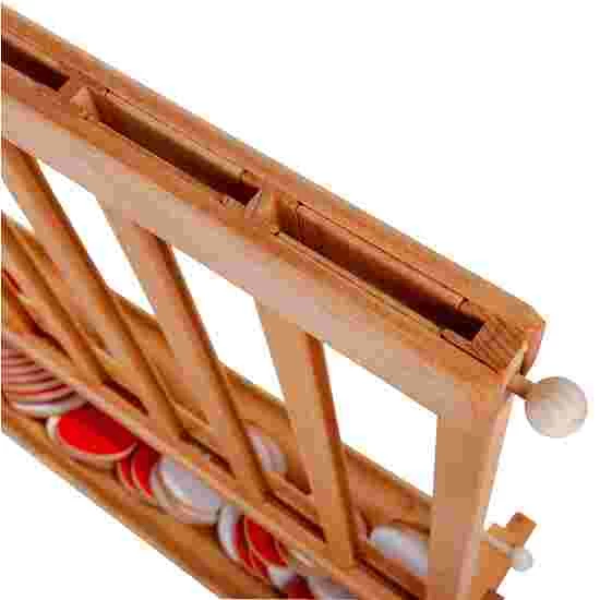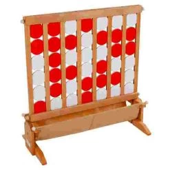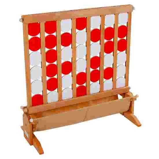 This four-in-a-row game is made of beech wood and very robust. Two horizontal bars prevent the pieces from falling out accidentally. If pieces do fall out of the sturdy beech construction, they land softly in a cotton cloth. No need, therefore, to scramble around collecting oiled, wooden pieces that have tumbled onto the floor. Since the pieces are particularly large (10 cm in diameter), the game can be used in a variety of settings. Whether for children, youths or senior citizens: fun is guaranteed with the four-in-a-row game.