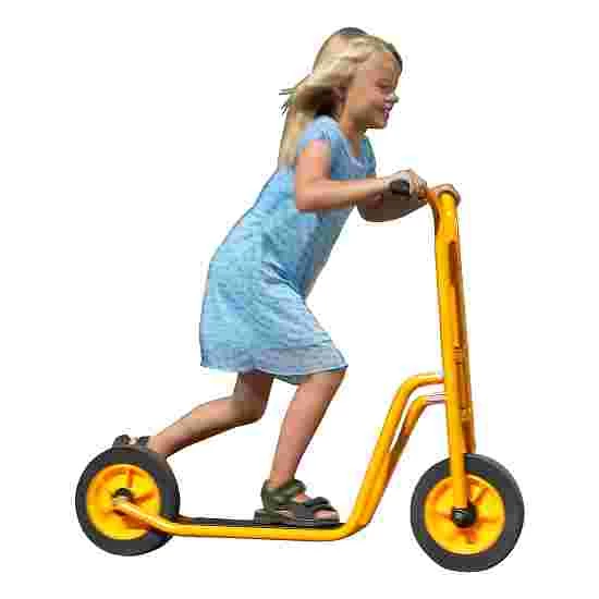 The Rabo scooter is suitable for older children because of its higher handles, which allows them to ride faster, train their balance and be mobile. The standing board is made of non-slip rubber and offers children’s feet a secure hold and firm footing. The wide, sturdy wheels ensure excellent comfort, even on loose gravel. The foot brake on the rear wheel allows the Rabo scooter to be stopped easily and safely.