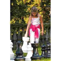 - Height of pieces: king 64 cm, queen 58 cm, bishop 56 cm, knight 48 cm, rook 43 cm, pawn 43 cm