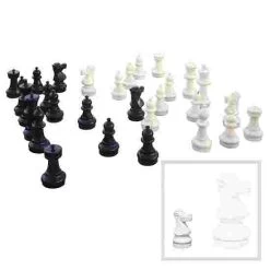 - Height of pieces: king 30 cm, queen 29Â cm, bishop 26Â cm, knight 22Â cm, rook 21Â cm, pawn 20Â cm