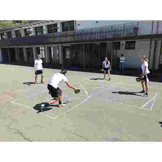 The Street Racket school sports set comes in a practical sports bag, so that you can easily carry the racquets, balls, chalk and info cards. Simply draw the playing field with the chalk. The versatile rebound game can be played in a group, alone or in pairs.